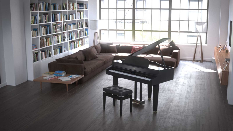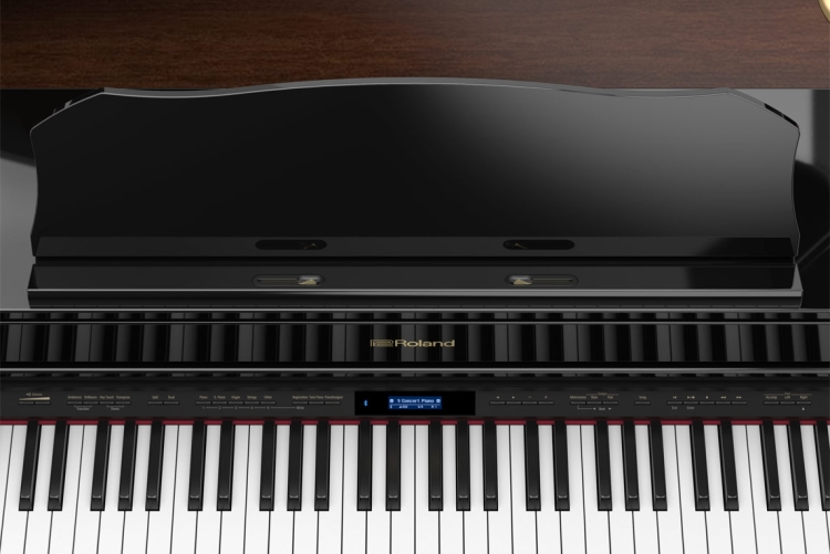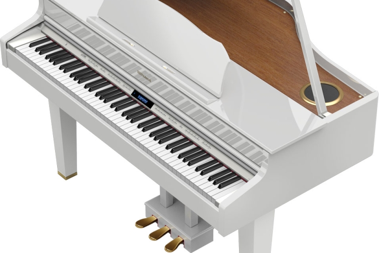De Roland GP607 is een stijlvolle digitale minivleugel in glanzend ebbenhout of wit. De GP607 is een stijlvolle digitale minivleugel in glanzend ebbenhout of wit en brengt een hommage aan de klassieke vleugelvorm met een imposant en toch gracieus design. En hoewel hij er traditioneel uitziet, ontdekt u bij nadere bestudering de allernieuwste technologie. Dankzij Bluetooth®-verbindingsmogelijkheden kunt u draadloos muziek streamen vanaf uw tablet/telefoon via de krachtige 4.1 meerkanaalsluidsprekers van de GP607, waardoor uw kamer gevuld wordt met een rijk, helder geluid.